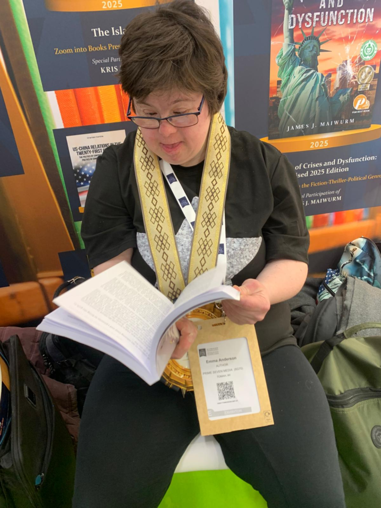 Meet Emma Anderson, the inspiring author behind I, Emma. Born with Down syndrome, Emma has spent her life challenging perceptions and helping reshape how the world sees individuals with differences. Her presence at this year’s fair wasn’t just about showcasing a book—it was about amplifying a mission.